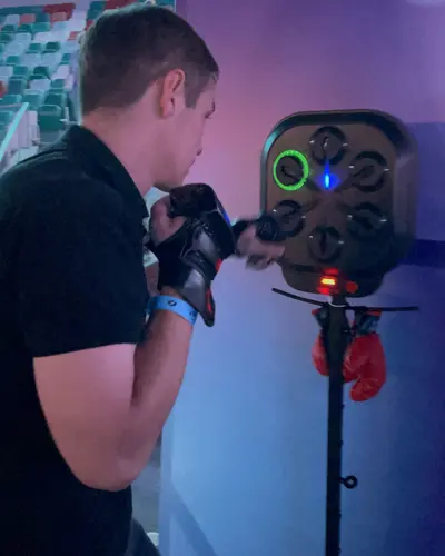 «Кнопочный бой» увлекательный интерактив, чтобы проверить вас на скорость и внимательность. Первым нажимай на кнопку, которая загорелась и забирай балл.