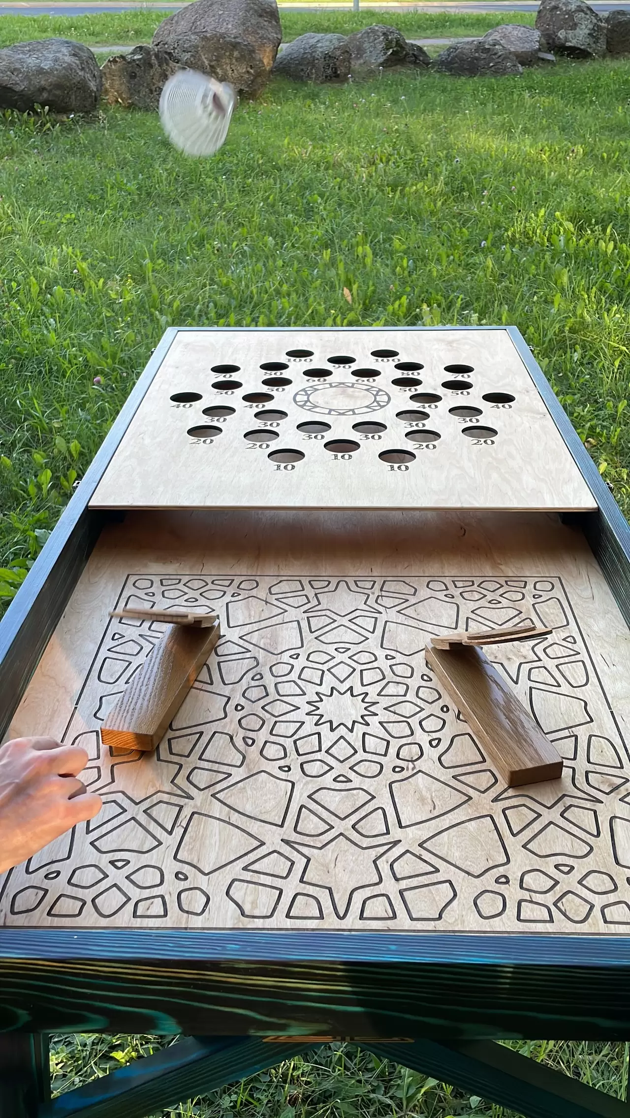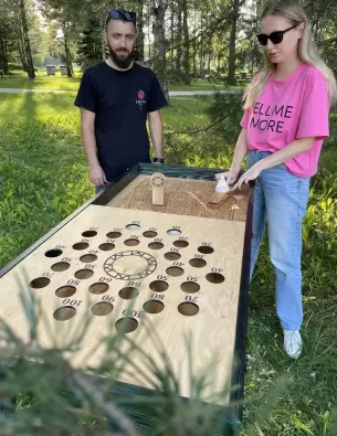 Суть игры: участвовать может от одного до четырех игроков. Цель каждого участника - попасть в одно из отверстий на игровом поле и заработать максимальное количество баллов. Каждое отверстие имеет разные баллы. В конце игры игроки подсчитывают свои баллы, и побеждает тот, кто наберет наибольшее количество очков за всю игру.