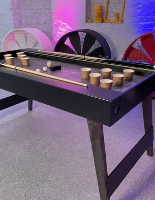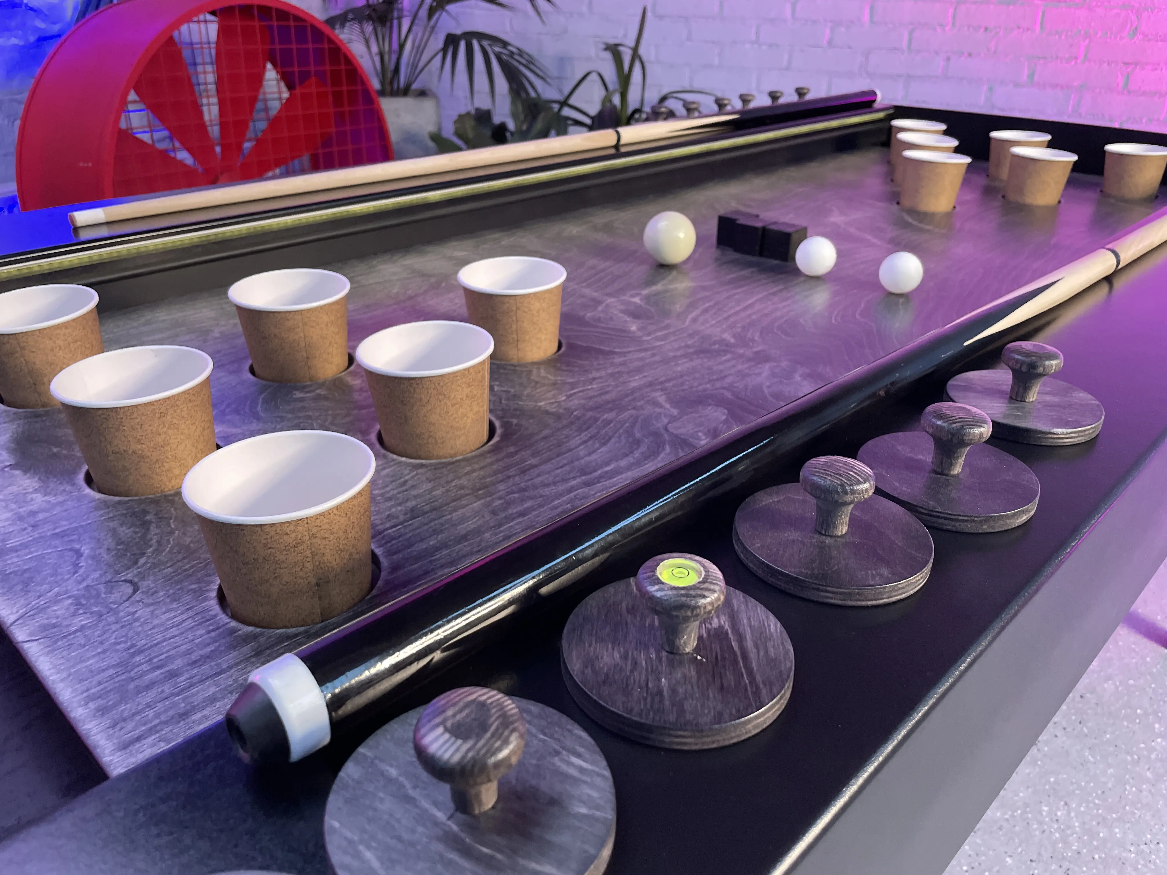 «BEERYARDS & BEERPONG» – это оригинальная и захватывающая игра, которая соединяет в себе элементы бирпонга и бильярда. Слияние этих популярных развлечений предлагает уникальный игровой опыт, который понравится всем, кто любит проводить время с друзьями за напитками и настольными играми. Представьте себе традиционный бильярдный стол, но с увлекательными нововведениями, превращающими его в настоящую арену для сражений с шарами и стаканами.