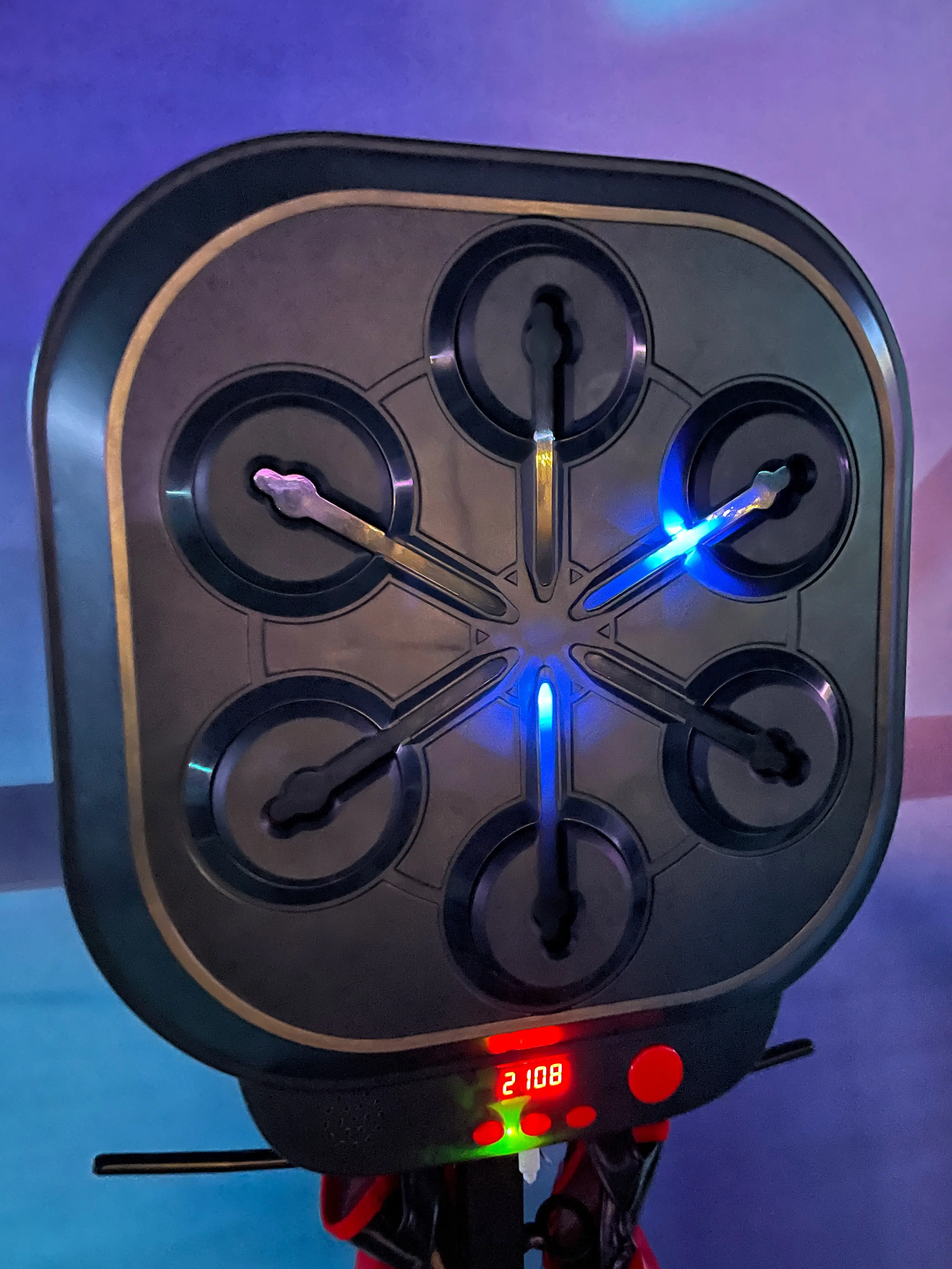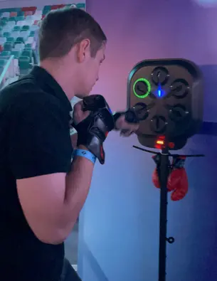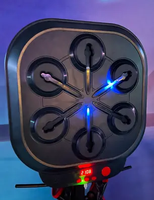 Принцип прост: гость становится перед грушей, надевает боксерские перчатки (у нас тут все серьезно), и после старта на поверхности бит бокса начинают загораться зоны, по которым нужно наносить точные и быстрые удары, а самое главное — все это делать в такт музыки. Чем лучше реакция и точность, тем выше результат. Благодаря Bluetooth-подключению можно включать любую музыку — это создаёт дополнительную атмосферу и делает игру ещё эмоциональнее.