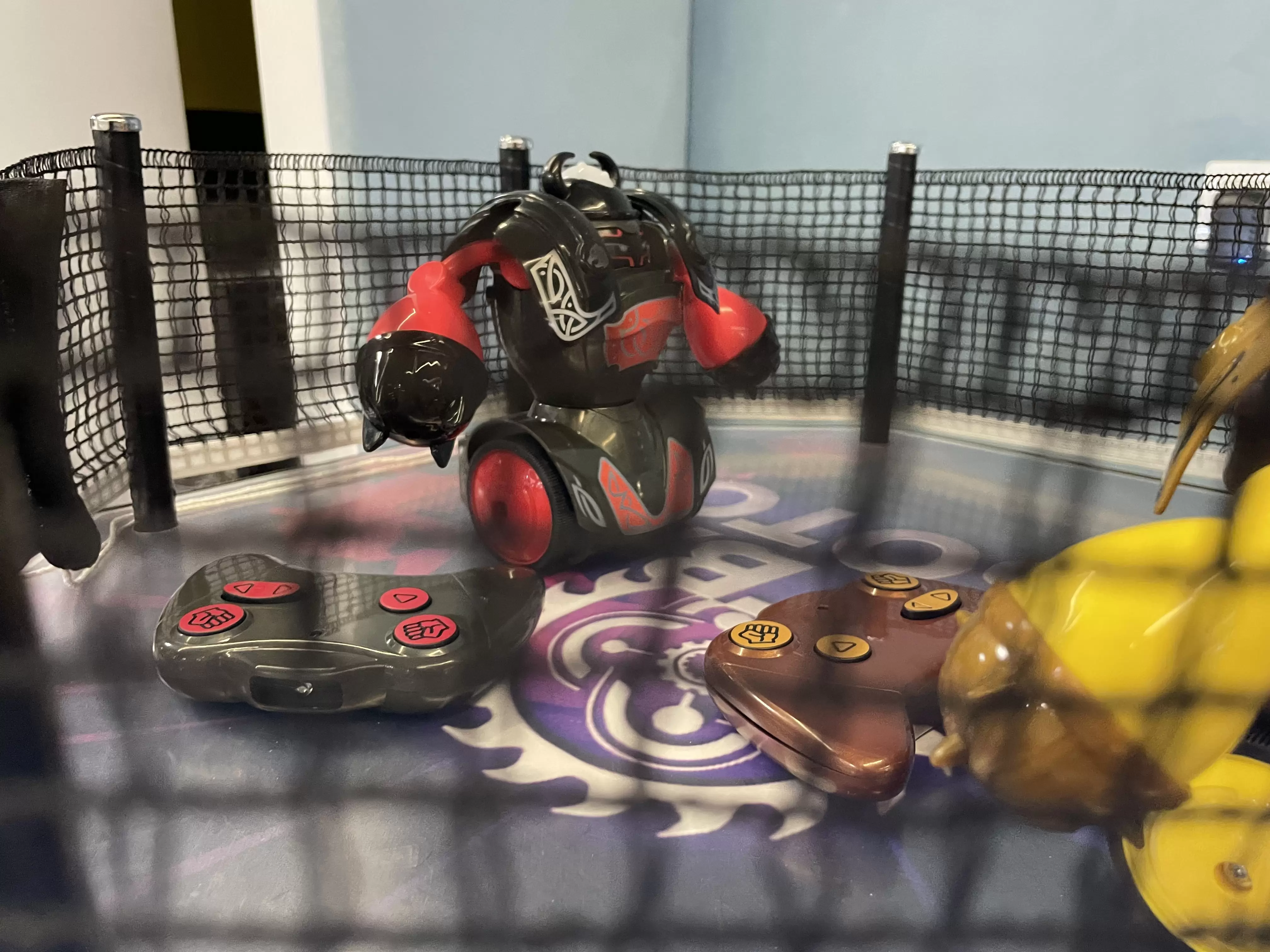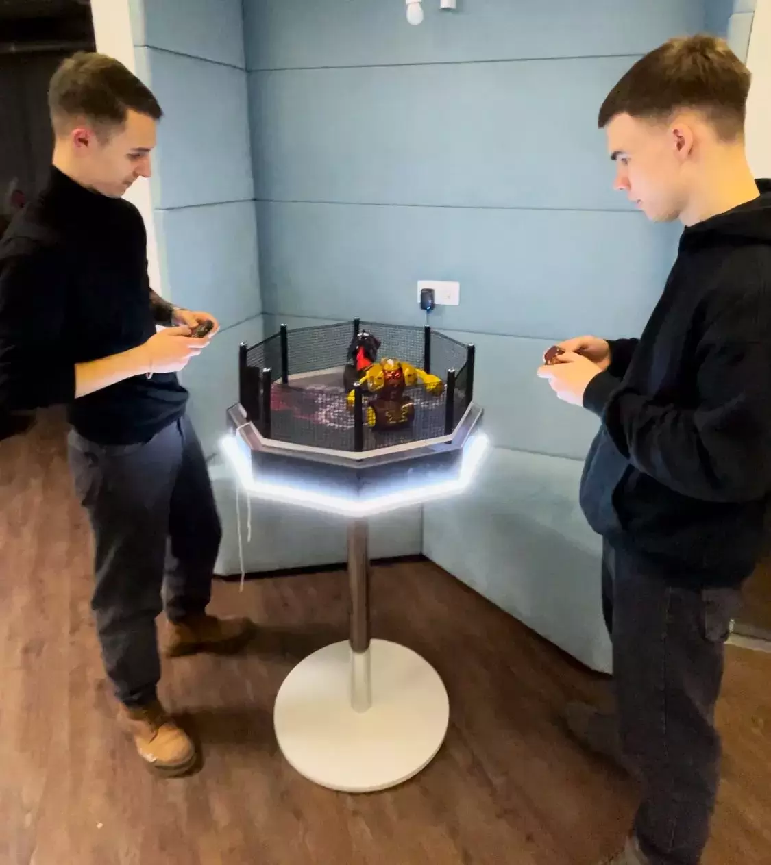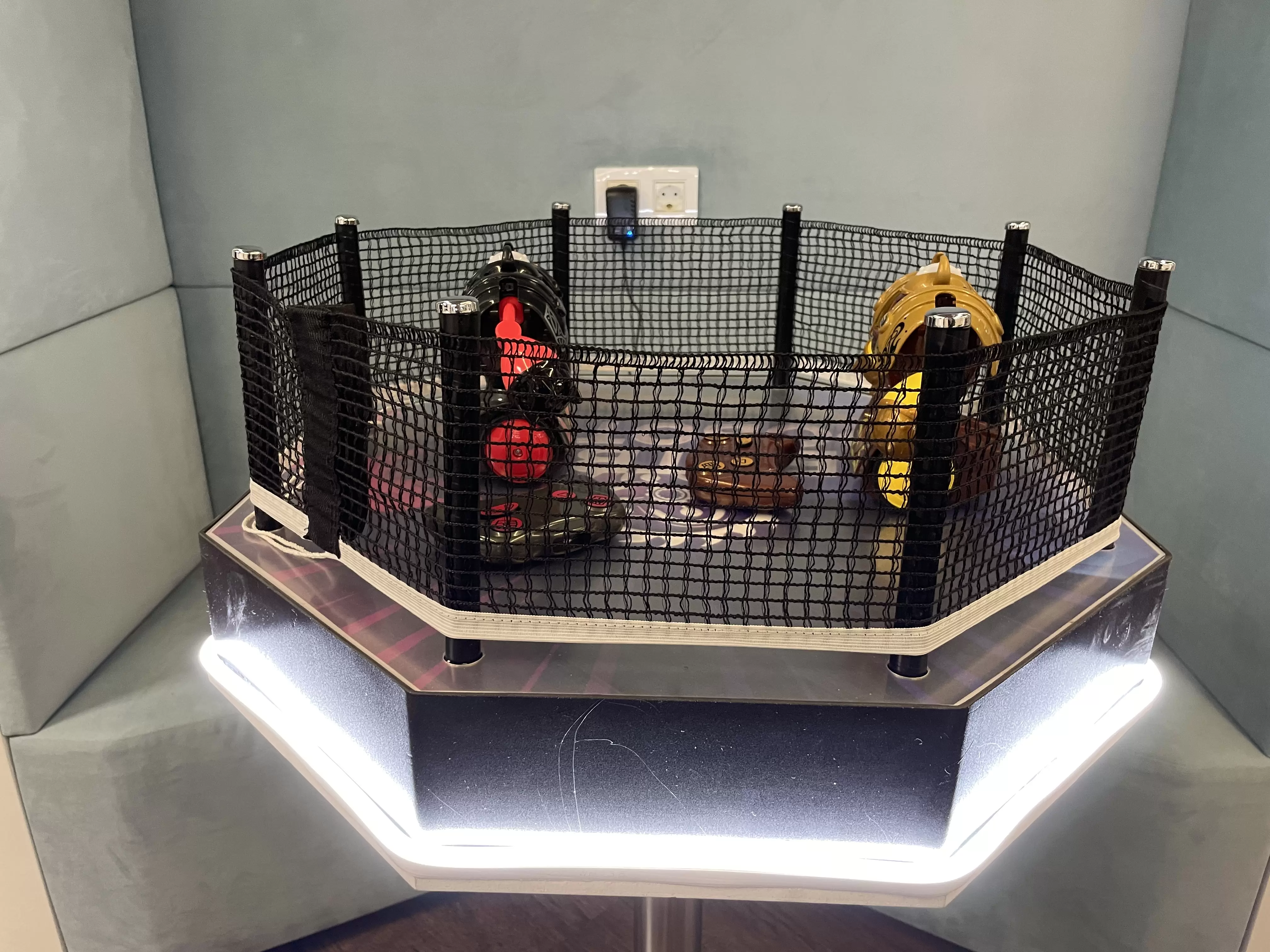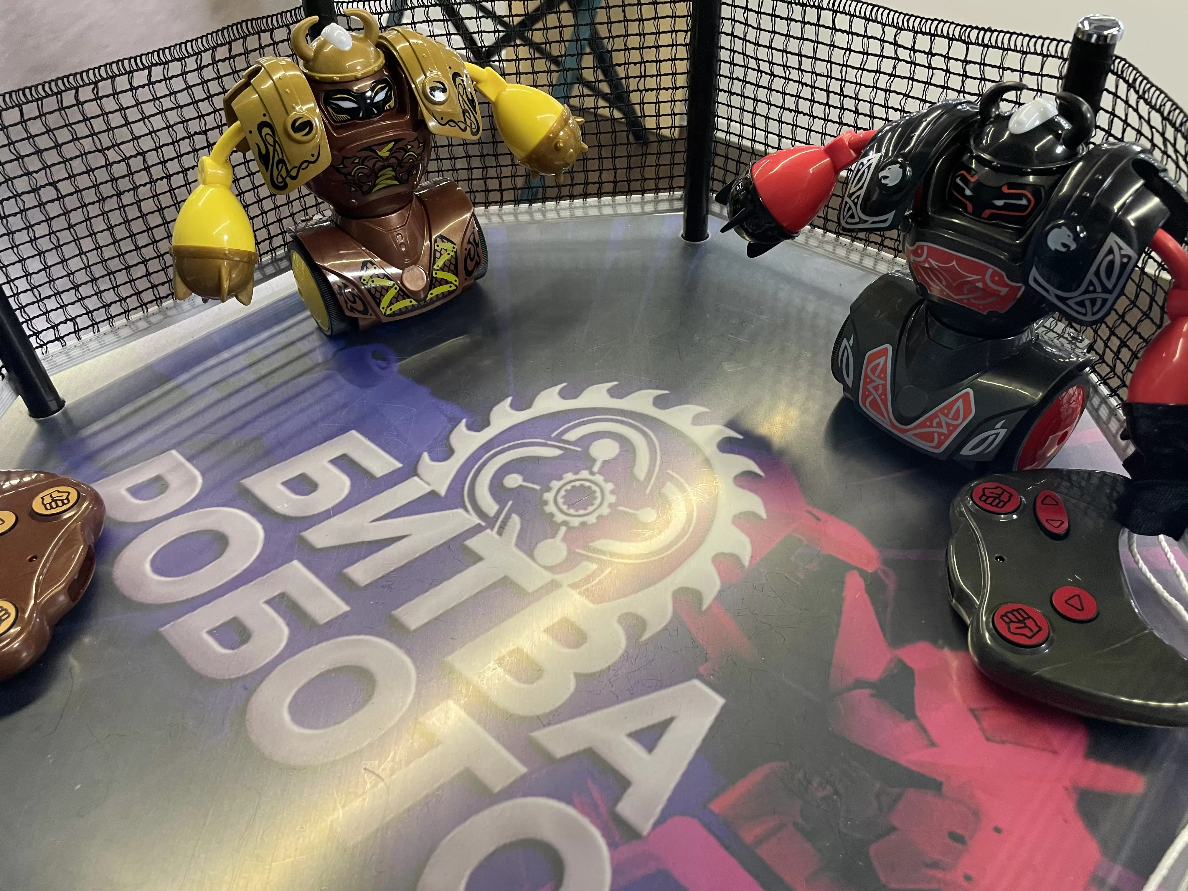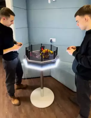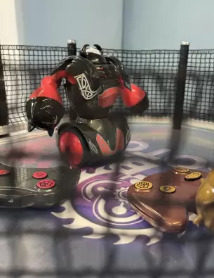 Место, где дерутся роботы – это оборудованный ринг, который имеет подсветку и добавляет визуального шарма интерактивной игре «Бои роботов».