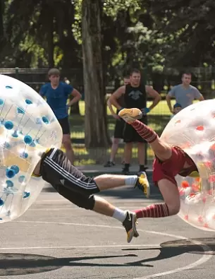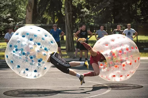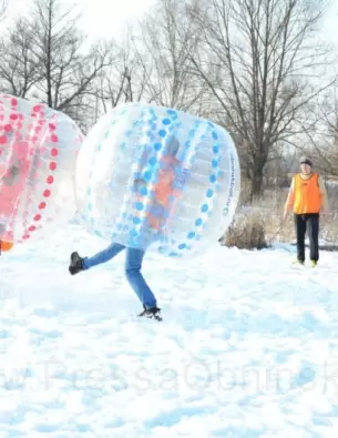 На вас одевается большой шар, он будет закрывать верхнюю часть вашего тела, тем самым гарантирует вашу безопасность во время игры. Правила игры могу меняться, там уже ваша фантазия. Можно поставить цель – вытолкнуть людей за пределы ранее заявленной территории, придумать забавные игры или вообще устроить футбол. Наш аттракцион вызовет массу положительных эмоций участникам и зрителям, которые добавят кучу позитива в ваш день.