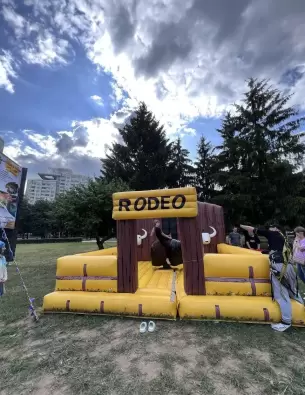 «Бык Родео» — аттракцион, который полон экстрима и эмоций. Отправляйтесь вместе с нами на Дикий Запад. Испытывайте свою устойчивость и возможность продержаться на быке максимально долго, как сможете. Ставьте рекорды и соревнуйтесь. А самое главное получайте максимум удовольствия!