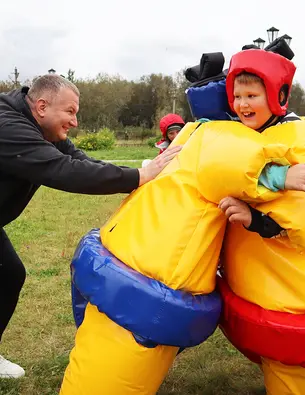 • На свадьбах, тимбилдингах, фестивалях или выпускных — это хит! Хотите рассмешить всех гостей и сделать праздник по-настоящему ярким? Устраивайте турнир сумо!
